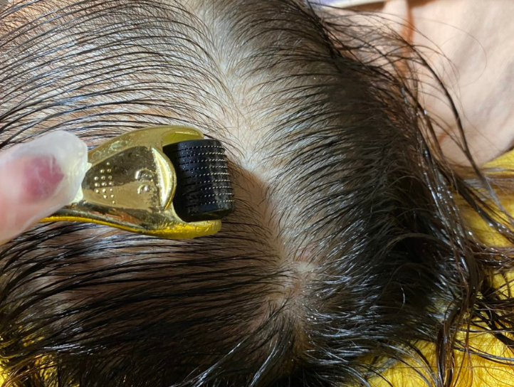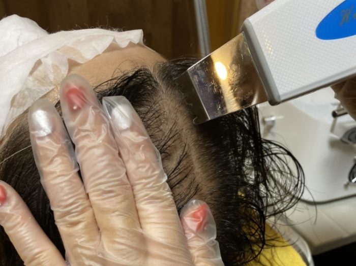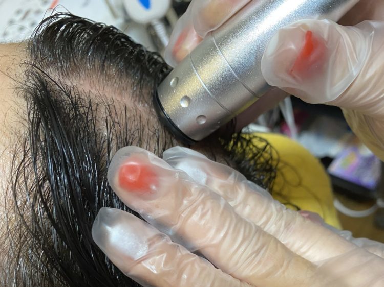 オリジナル機器を使った頭皮用エステです。国産のヒト幹細胞培養液とコルアップローラーなどの様々な機器により頭皮環境の改善を行なって行く発毛キャンプシステムです。