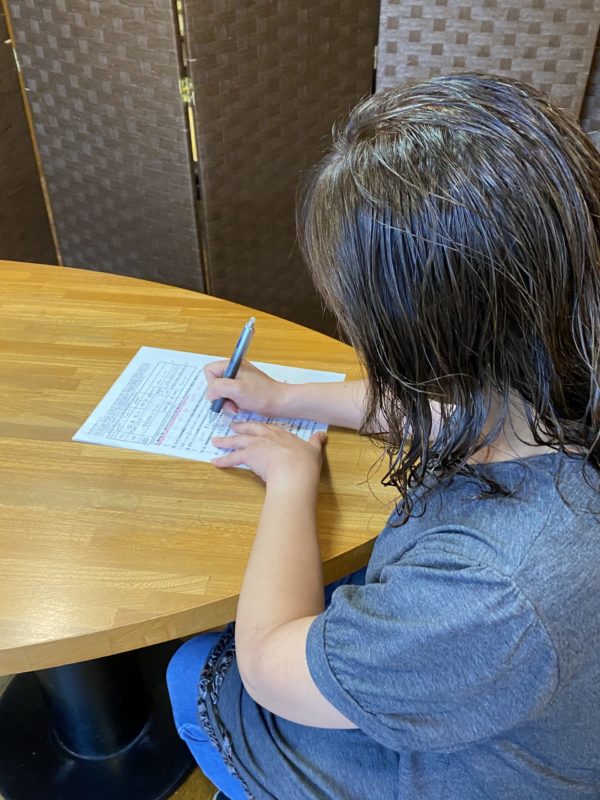 問診票をご記入いただきます。しっかり書いていただいた後に私、松山が問診形式でひとつひとつお聞きしていきます。
